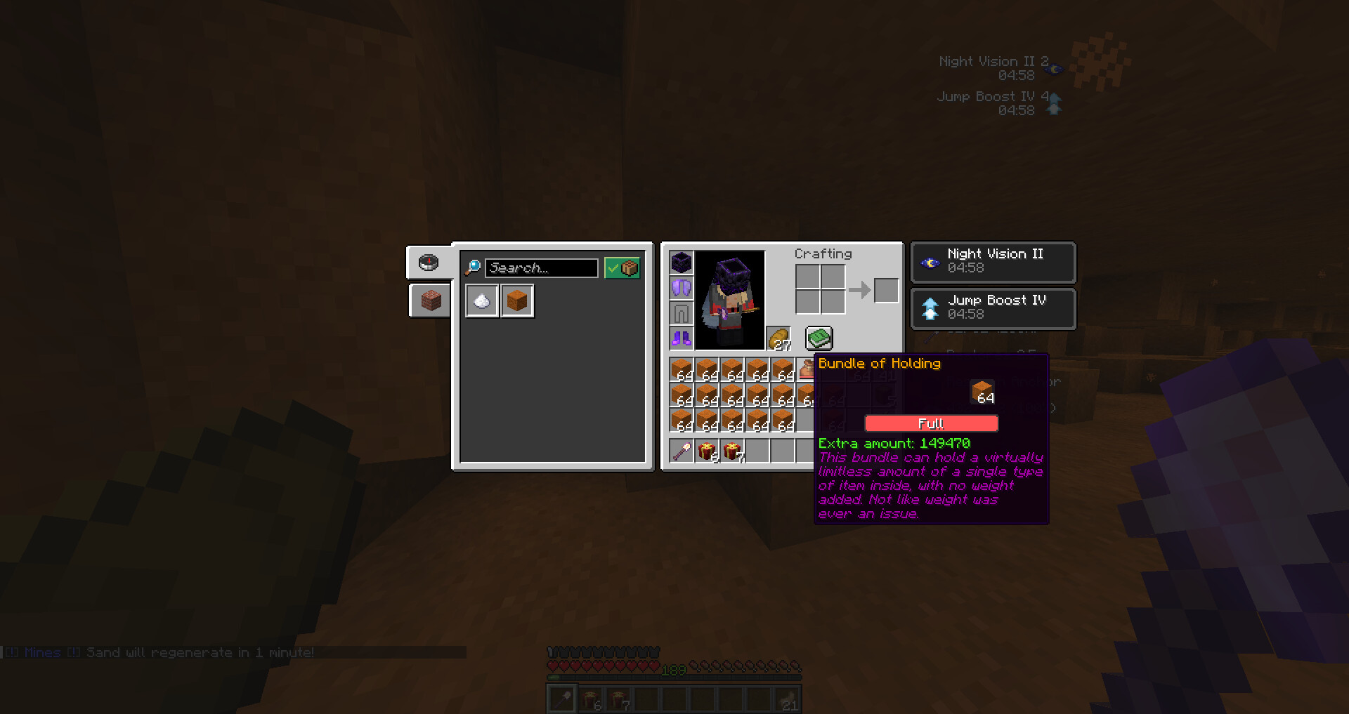 What happened: I lost my Bundle while at the Sandmine just as it was about to reset. I placed my loot inside the Bundle, but the game seemed to disconnect at that moment (I even took a screenshot). I stopped what I was doing and returned to spawn, but then I got disconnected. When I logged back in, the Bundle was missing from my inventory. I went back to the Sandmine, hoping I had dropped it, but it was nowhere to be found. Many thanks in advance for your assistance.